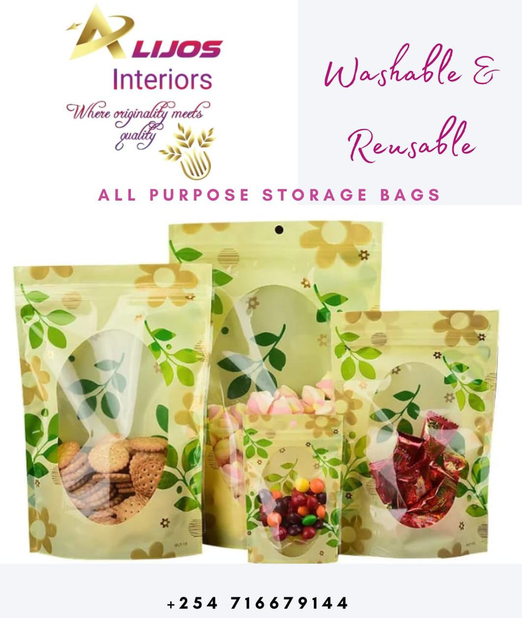 Ziplock storage bags 📌Available in various sizes 📌Flowered design 📌Prices: ✓2 kg size...dozen @300/- ✓1 kg size....dozen @240/- 📌Ideal for storing raw grains, chevda on shelves and cabinets. Also ideal for storing both raw and cooked food for later use-in the fridge. 📌Also very ideal as gift packaging. 📌Can also work well with packing snacks when going to the office or during a celebration.